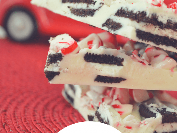 Even more fun than traditional peppermint bark--add some Oreos!