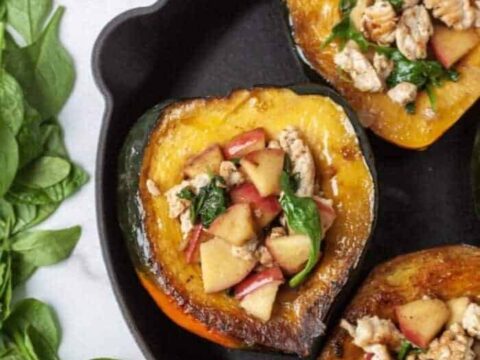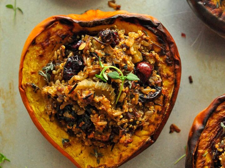 This stuffed acorn squash is sweet, savory and so flavorful! This recipe is easy, healthy and delicious.
