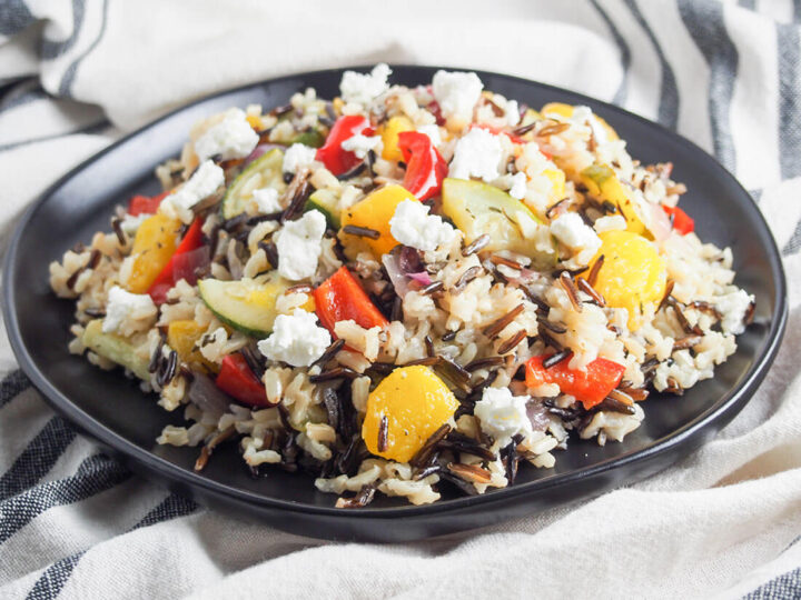 This acorn squash wild rice salad is a tasty combination of roasted vegetables, wild rice, and a citrus dressing. It's great for picnics, potlucks and to pack for lunch.