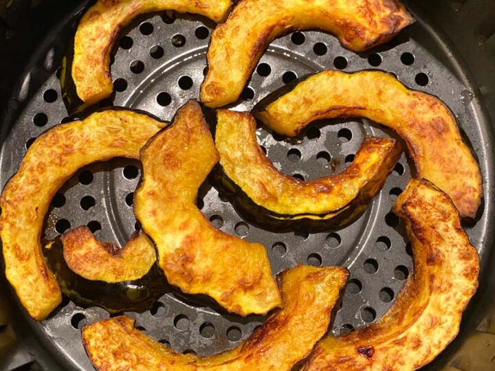 This simple Air Fryer Acorn Squash recipe drizzled with maple syrup is the perfect fall and winter side dish to go with chicken, turkey or beef. Takes only a few minutes to prepare and under 20 minutes to cook!