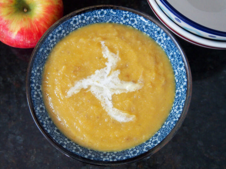 This roasted apple and acorn squash soup is really easy to make and a tasty combination of gently sweet and savory flavors. A true taste of fall!