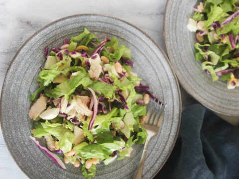 Chicken chopped salad is a fresh and colorful salad made with an assortment of fresh ingredients tossed together in a homemade lemon vinaigrette.