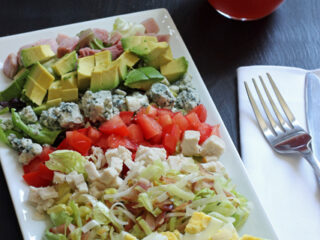 A Cobb Salad is full of flavor so it never need be boring. This one with ham and turkey gets dressed up with bacon and leeks.