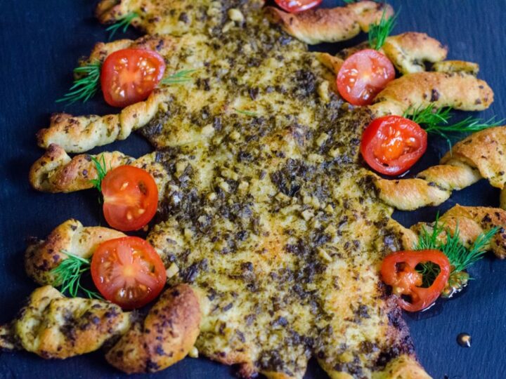 Great alone, with a meal or as an appetizer, this Christmas Pesto Tree Bread is easy to make and only takes a few ingredients. Here's how to make it!