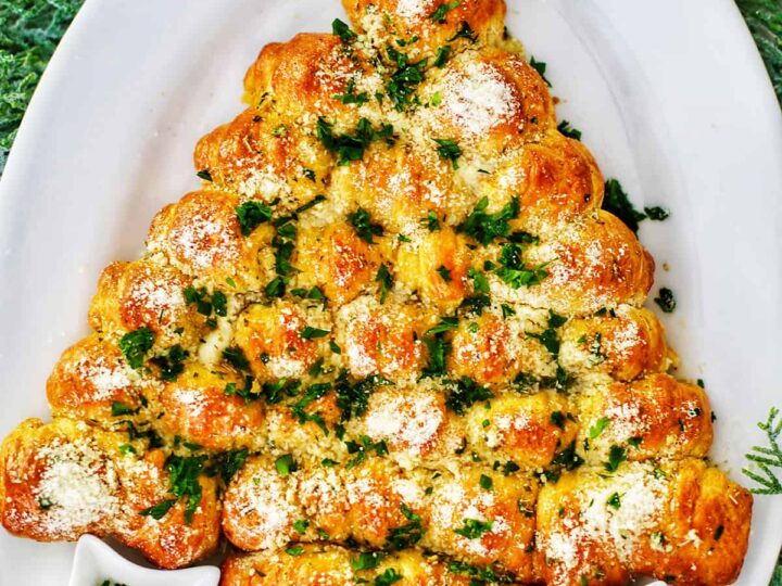 This Cheesy Christmas Tree Pull-Apart Bread is easy to make, and so fun to make and eat! It's a beautiful Christmas appetizer that the whole family will love.