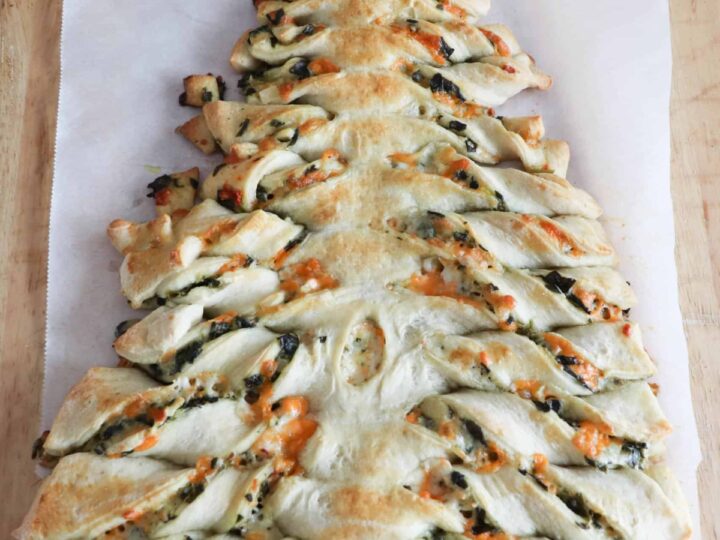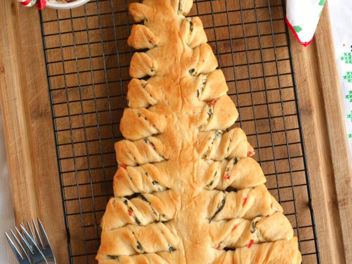 This festive, party-perfect, pull-apart Spinach Dip Stuffed Crescent Roll Christmas Tree is a fun way to serve up your favorite cheesy spinach dip around the holidays!
