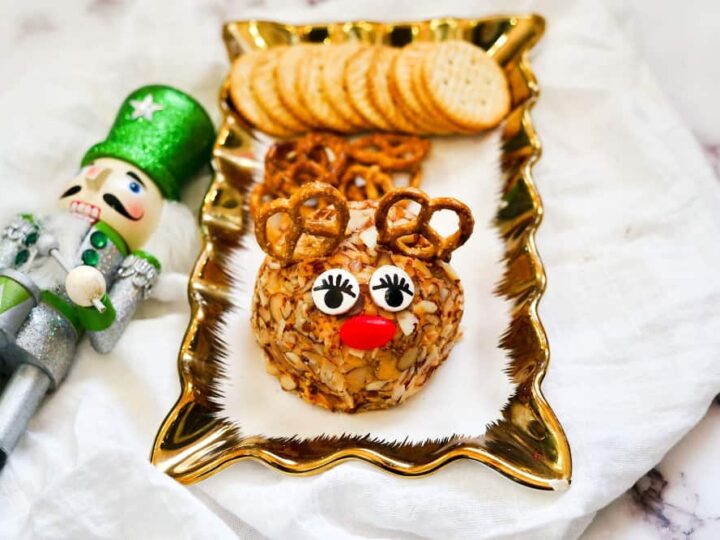 This cute reindeer cheese ball is a fun and festive last minute appetizer to make for your holiday gatherings. Here's how to make it!