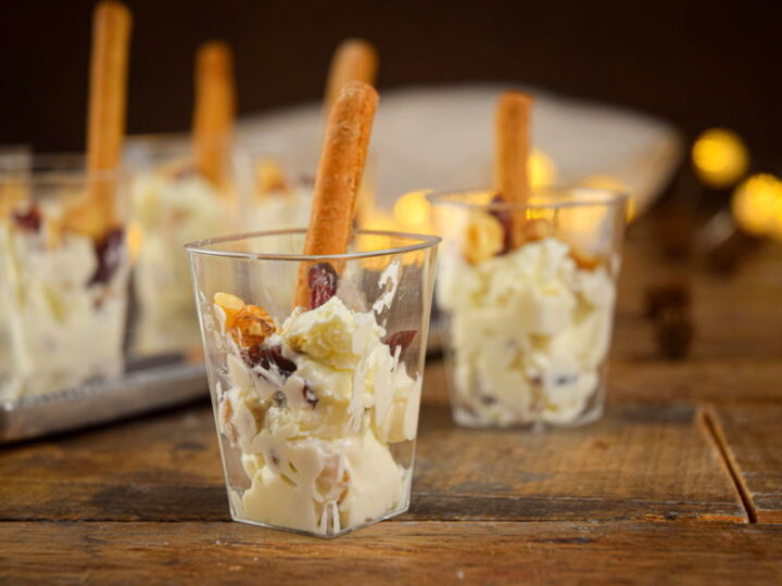 These goat cheese shots for the holidays consist of tangy goat cheese, sweet cranberries and crunchy walnuts in shot glasses or mini dessert cups! Serve them as an appetizer before Christmas dinner or for a delicious after-dinner treat.