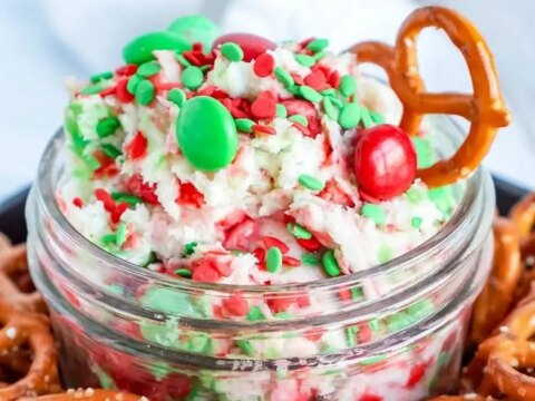 This sugar cookie cheesecake dip is so easy to make. It makes a great treat any time of day. Use it to dip cookies or salty items like pretzels.