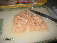 4. Start slicing the other chicken breasts from the package(s). I try to slice them to make uniform breast pieces so that when I grill or saute them, they’ll cook evenly. I put these pieces in individual zipper bags (one meal’s worth in each bag), then I chop some of the chicken into smaller pieces for recipes like Stroganoff and Chicken, Pepper, and Potatoes (recipes below). These go into their own freezer bags as well.