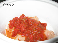 2. Add two of the chicken breasts to the Crockpot. Dump a can of diced tomatoes on top (with green chiles for mild, jalapenos for spicy). This should cook on low for 5-8 hours, high for 3-4 hours for shredded chicken. This will make shredded chicken tacos for tonight, then you can use the leftovers for another meal.