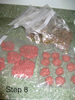 - Brown your ground beef; I used about 3 lbs. here and put 2 lbs. aside for hamburger patties. While the beef is browning (it takes a while in this large amount), form your hamburger patties and put into zipper bags to freeze.