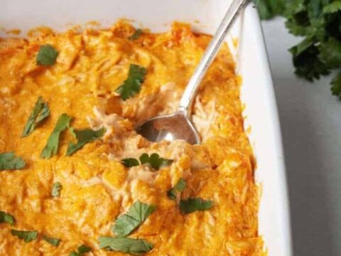This dairy free buffalo chicken dip is creamy, spicy and so flavorful! It is great for holidays, parties and entertaining.