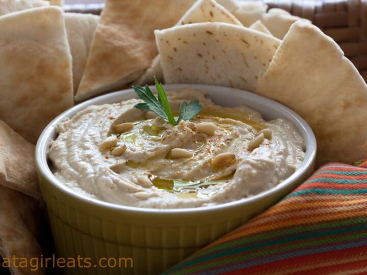 This delicious White Bean Dip Recipe is a great addition to any party menu and perfect with our seasoned homemade pita chips. It is quick and easy to make – and your guests are sure to love the subtle balance of flavors packed into each bite.