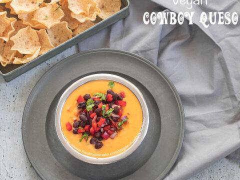 Forget plain old queso dip! This dip is vegan and loaded with cowboy favorites like black beans and jalapeños.