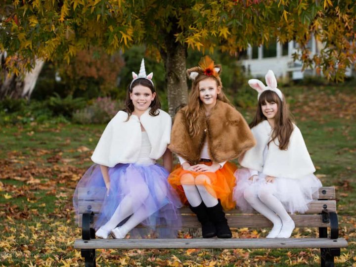 5 Minutes for Mom shares a DIY Bunny Costume and DIY Fawn Costume, both based around a no sew tutu.