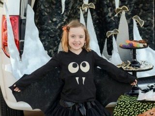 Nikki used a purchased pettiskirt for this adorable Bat, but you could easily make your own using black tulle.