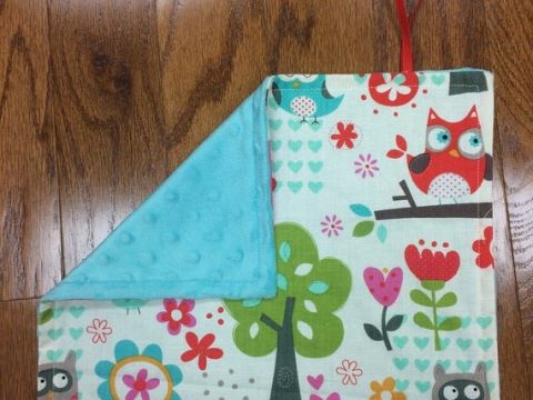This blanket is big enough to snuggle, yet small enough to take everywhere without dragging. It is made from cotton and soft minky.
