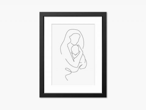 An elegant line art print of a new mother with her newborn baby. Great piece of wall art for any decor. Perfect for framing or as a gift.