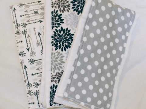 These burp cloths are made with organic tri fold cloth baby diapers which makes them super absorbent. Love that they cover your whole shoulder, too!