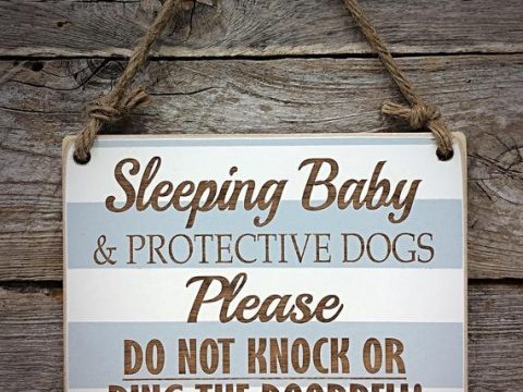 Sleeping Baby & Protective Dogs Baby Sign Front Door Sign | Etsy