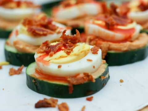 These bacon and egg cucumber bites are keto and easy to make ahead of time. They're gorgeous and perfect for sharing.