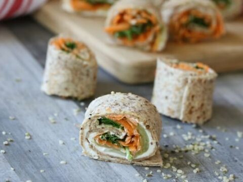 Veggie pinwheels are the perfect snack, lunch, or appetizer recipe. Vegetarian pinwheels with hummus are loaded with flavor and texture too!