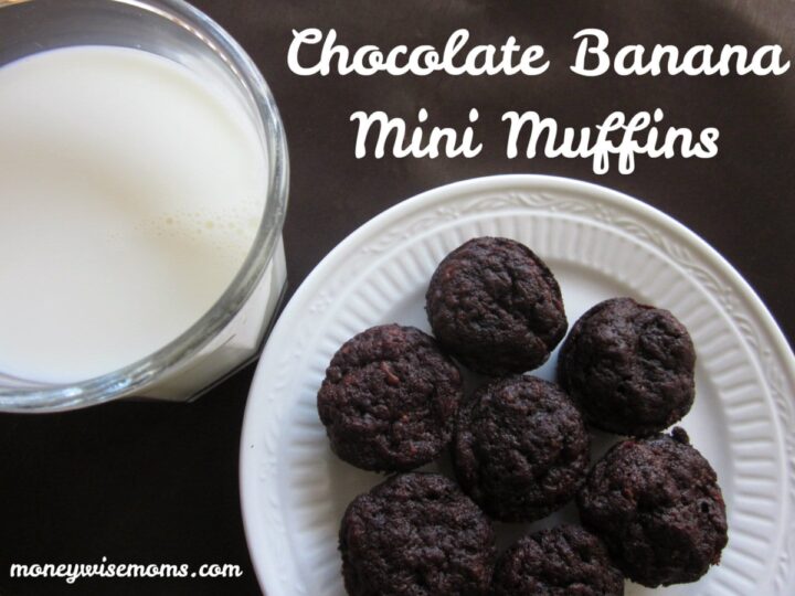 These chocolate banana mini muffins look indulgent but they're made with whole wheat and a healthy treat for the whole family.