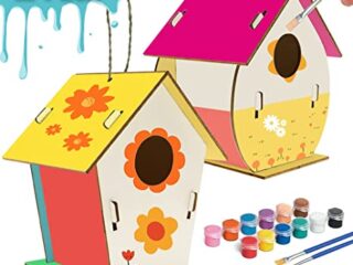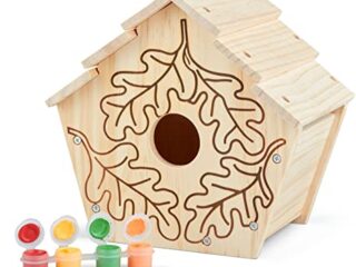 Bird houses are fun and functional. This kit is easy and includes some marked designs for painting afterwards!