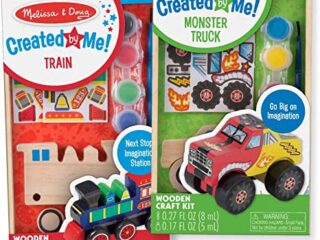 Melissa & Doug Paint & Decorate Your Own Wooden Vehicles Craft Kit 2 Pack – Monster Truck, Train