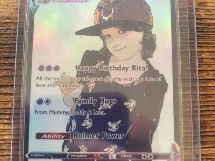Check out this personalized holographic Pokemon card if you're looking for unique Pokemon gifts for loved ones. Each card can be customized with your own photos, transformed into a cartoon style, and filled with your choice of details. Choose the color, HP, attack, type of card, and more!