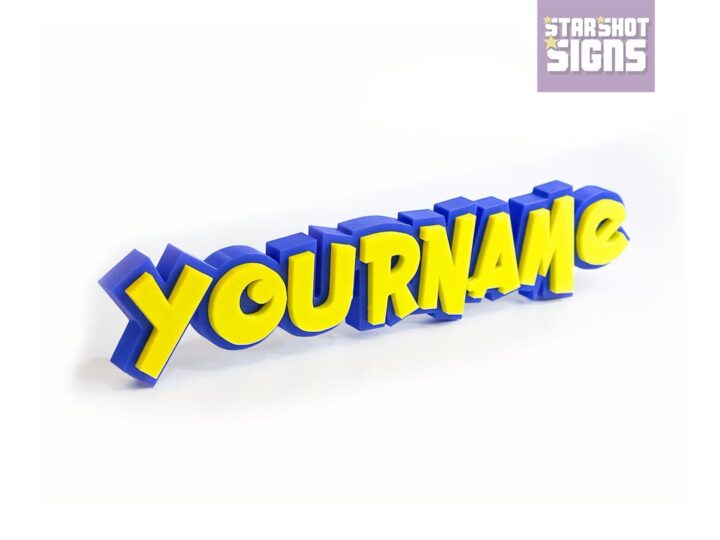 Add a splash of color and fun to the kids' room through this 3D multicolored nameplate. This personalized sign is crafted with the vibrant, whimsical aesthetic of Pokemon-style text, adding a unique touch to any setting. It's an ideal present for young Pokemon fans!