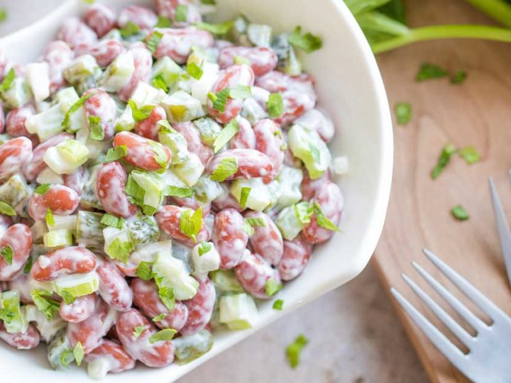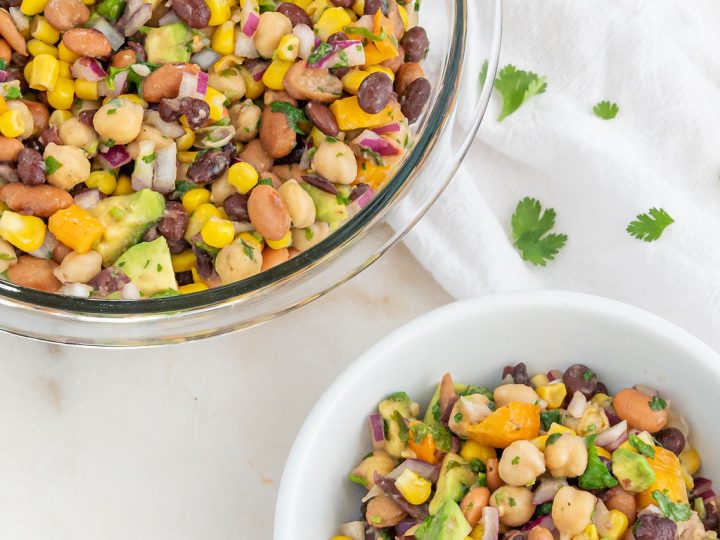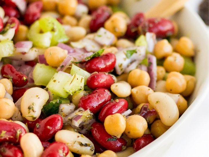 Three Bean Salad is a classic summer salad recipe. It’s colorful with soft and crunchy textures, and a delicious tangy-sweet dressing. It’s fast and easy to make!