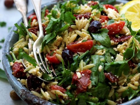 This easy Greek Orzo Salad is perfect for picnics, potlucks, BBQs and get togethers. Whenever you need an easy and healthy side dish, that is guaranteed to disappear first, make this gorgeous Greek orzo salad!