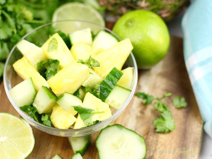 This 4-ingredient Pineapple Cucumber Salad is a simple side dish recipe with amazing flavor! Zing and tang! It’s so easy because it’s ready in under 10 minutes. Whole30 too!
