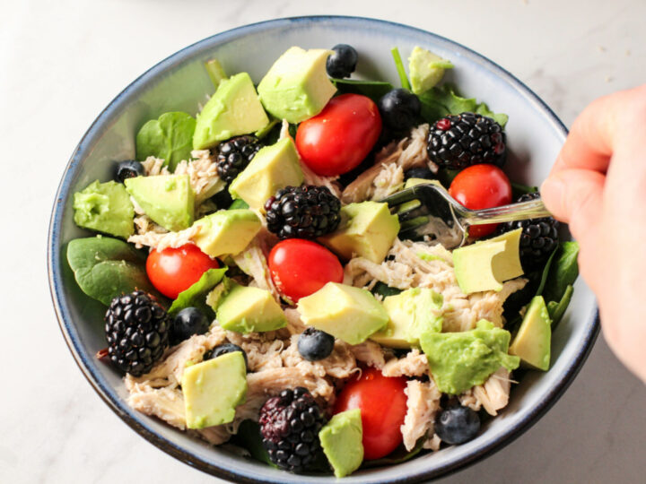 This easy summer salad is full of hydrating foods like watermelon, cucumber, jicama & blueberries and topped with a simple (yet addicting) coconut lime dressing. Every bite is refreshing, crunchy, creamy, and slightly sweet + tangy!