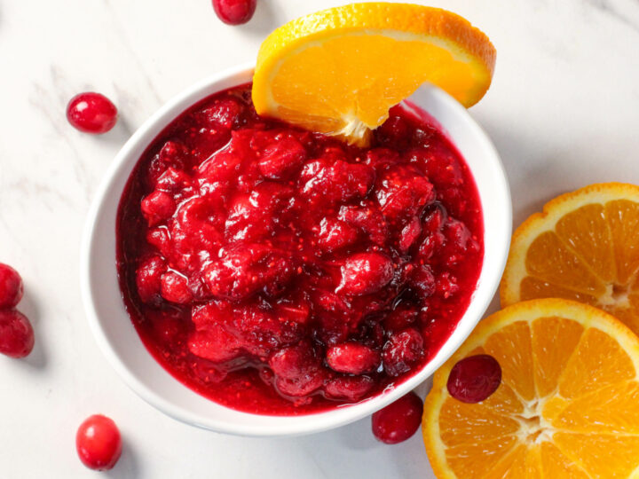This orange cranberry sauce is sweet, tangy, and refreshing! It’s fast and easy to make with just 4 ingredients!