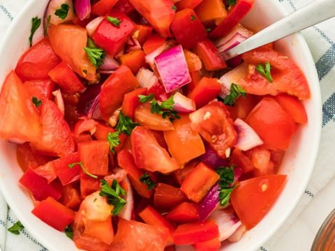 This refreshing, chopped summer Tomato Salad is a perfect, foolproof side dish.