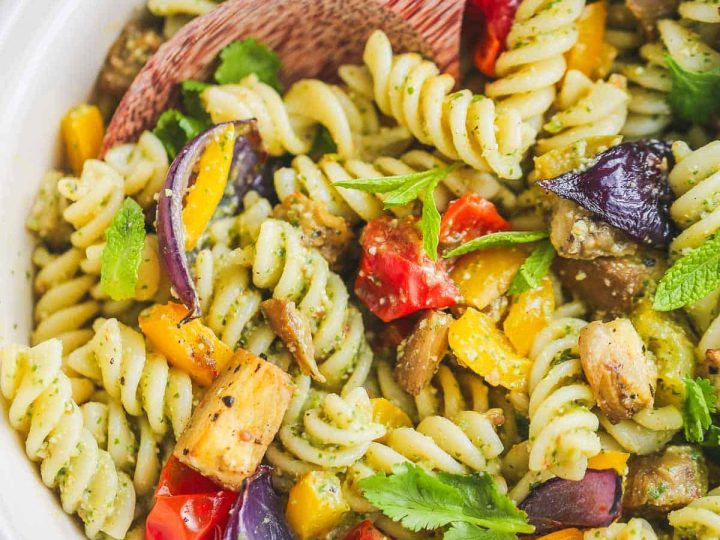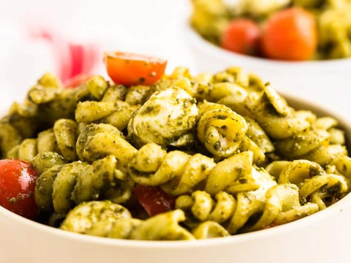 This Pesto Pasta Salad is a real crowd pleaser. It’s a simple, make-ahead summer salad recipe that’s perfect for parties, picnics, and potlucks.