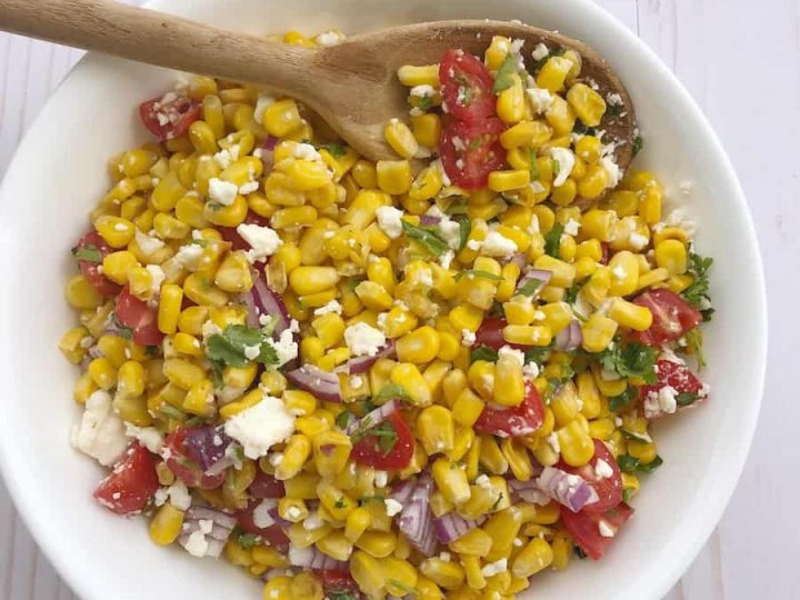 Easy Summer Corn Salad Recipe is a summer salad you’ll make all season long. It’s a side dish full of sweet corn, ripe tomatoes, salty feta cheese & more!
