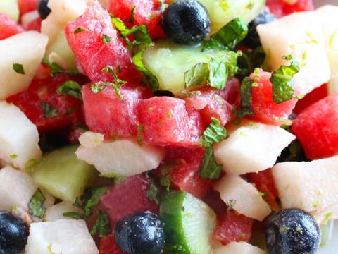 Watermelon Salad with Cucumber, Jicama & Blueberries
