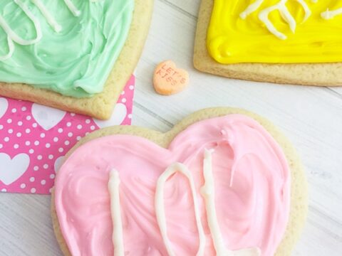 These Valentine’s Day conversation heart cookies can be sweet or sassy! Simply ice and decorate with your own favorite Valentine’s Day phrases.