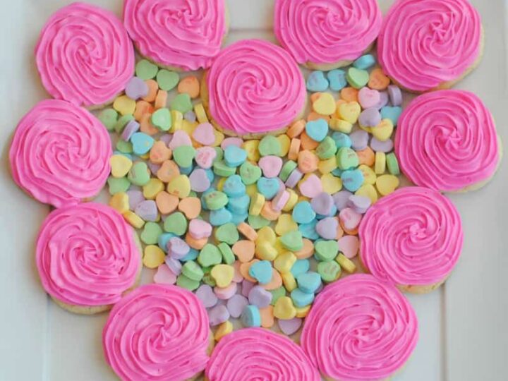 This Heart-Shaped Cookie Wreath is the perfect way to celebrate Valentine’s Day with lots of kids! With delicious homemade cookies and fun conversation hearts, everyone will enjoy it!