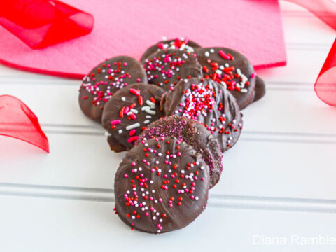 Create no-bake Knock-Off Thin Mint Cookies using crackers. Add sprinkles for your favorite Valentine.