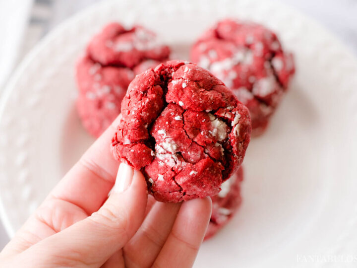 Red velvet crinkles cookies are super cute and tasty. They look great for any occasion but are especially lovely for Valentine’s Day, Christmas, and more! Try out this easy cookie recipe today.