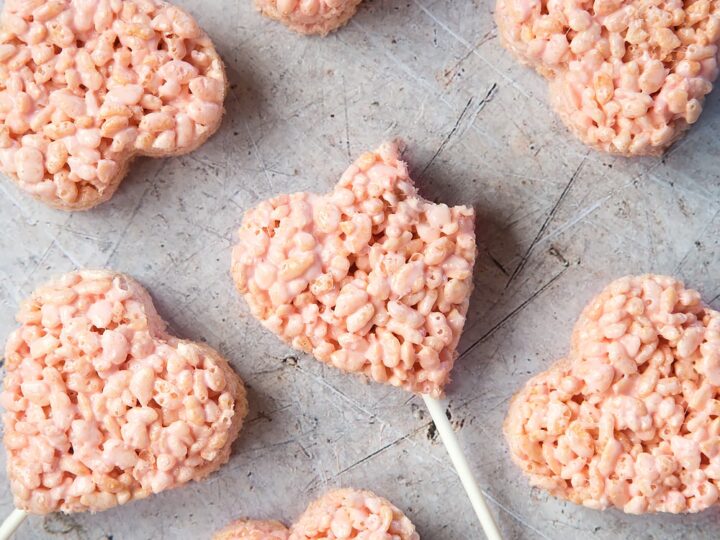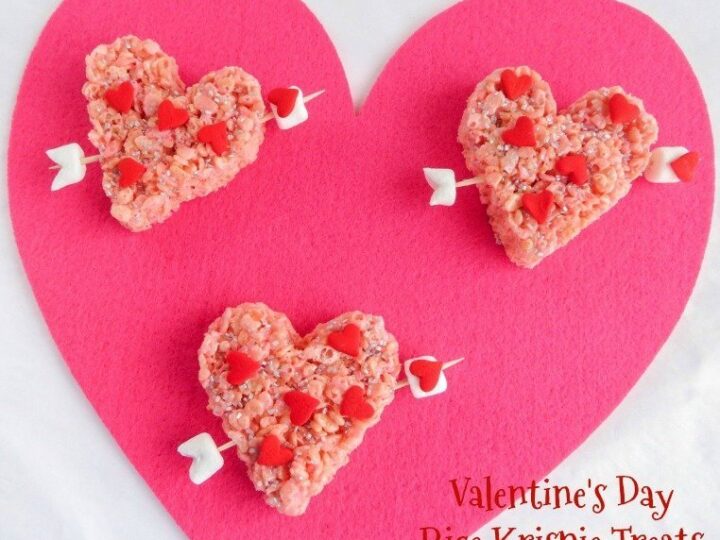 These heart Rice Krispies are perfect for Valentine’s Day. This simple recipe is easy to make and great for kids.